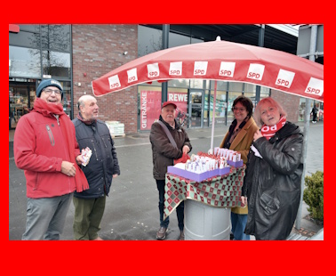 Der SPD-Ortsverein lud am Nikolaustag zum Gedankenaustausch vor Ort ein. Auf dem Cyriakusplatz kamen die SPD-Mitglieder mit Bürgerinnen und Bürgern über aktuelle kommunalpolitische Themen ins Gespräch. Für alle gab es eine kleine Nikolausüberraschung.