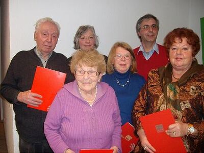 Im Anschluß daran ehrte er seine verdienten Mitglieder für ihre langjährigen Mitgliedschaften in der SPD: Brigitte Franssen 40 Jahre, Pia Heine 25 Jahre, Gisela Schulz 25 Jahre, Hermine Karenske 10 Jahre und Georg Steinmann 10 Jahre.
