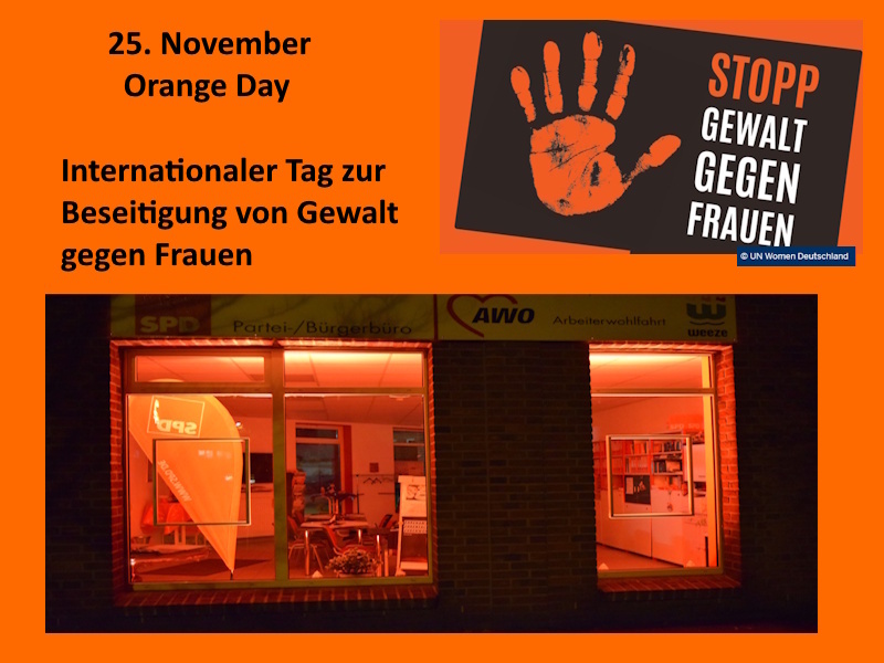Wir als SPD-Weeze setzen ein unübersehbares Zeichen gegen Gewalt an Frauen, die leider immer noch in allen gesellschaftlichen Schichten Realität ist. Verletzendes und respektloses Verhalten hat in unserer Gesellschaft keinen Platz.